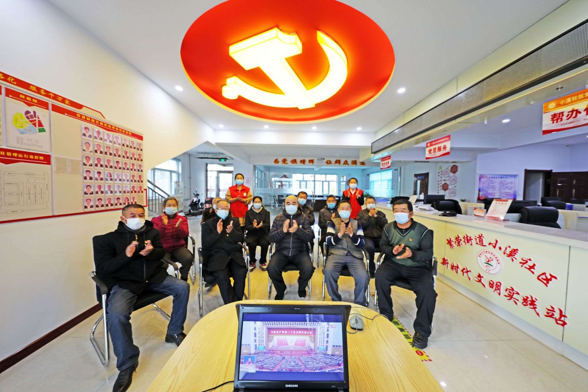 烏海市烏達區(qū)巴音賽街道辦事處組織轄區(qū)黨員群眾收看黨的二十大開幕會。本報記者郝飚?dāng)z