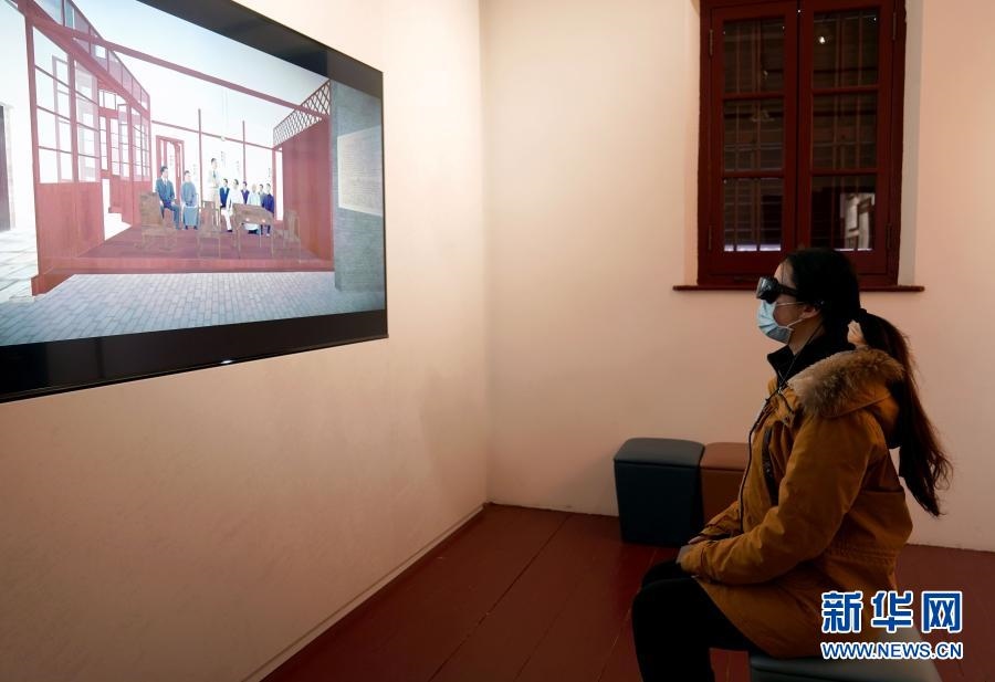 1月18日,參觀者通過VR設(shè)備了解進步青年們在舊址內(nèi)活動情況。新華社記者 劉穎 攝