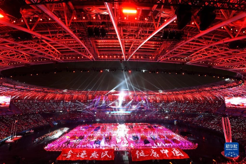 第十三屆全國運(yùn)動(dòng)會(huì)開幕式在天津奧林匹克中心體育場舉行(2017年8月27日攝)。新華社發(fā)(白禹 攝)