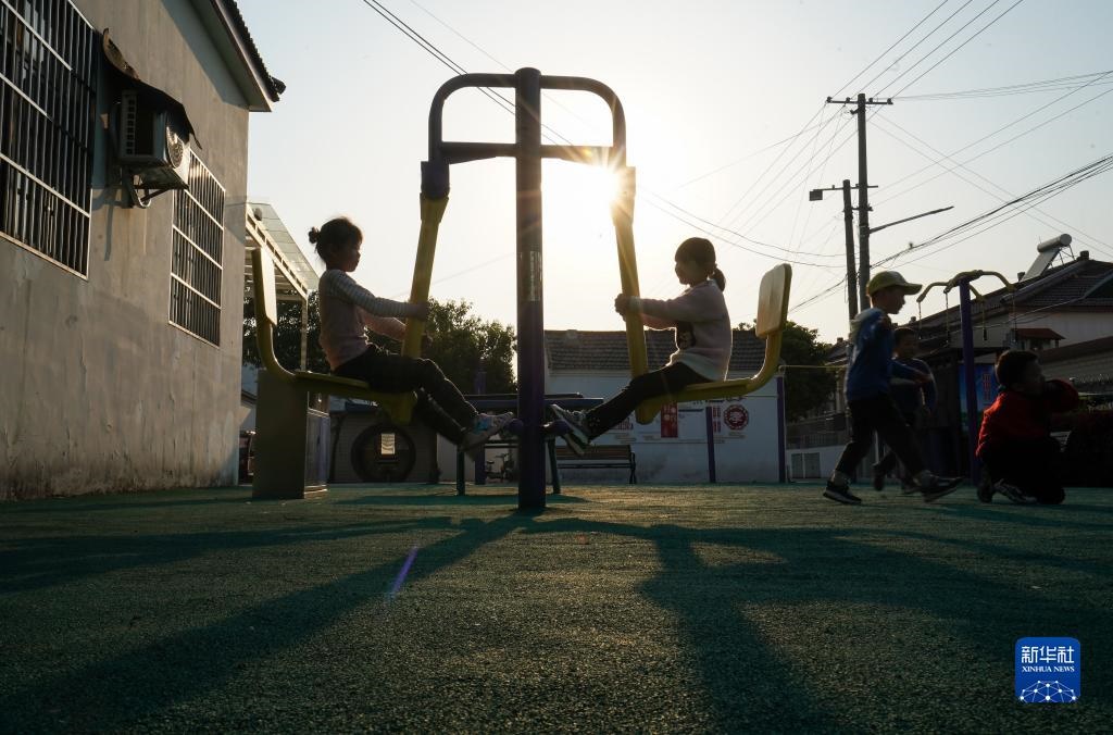 小朋友在鎮(zhèn)江市世業(yè)鎮(zhèn)永茂圩自然村的文化活動(dòng)廣場玩耍(2020年4月13日攝)。新華社記者 季春鵬 攝