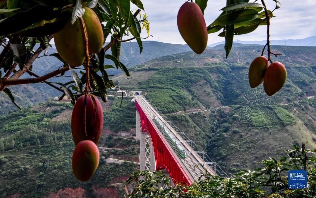 復興號列車通過中老鐵路元江特大橋(6月1日攝)。新華社記者 江文耀 攝