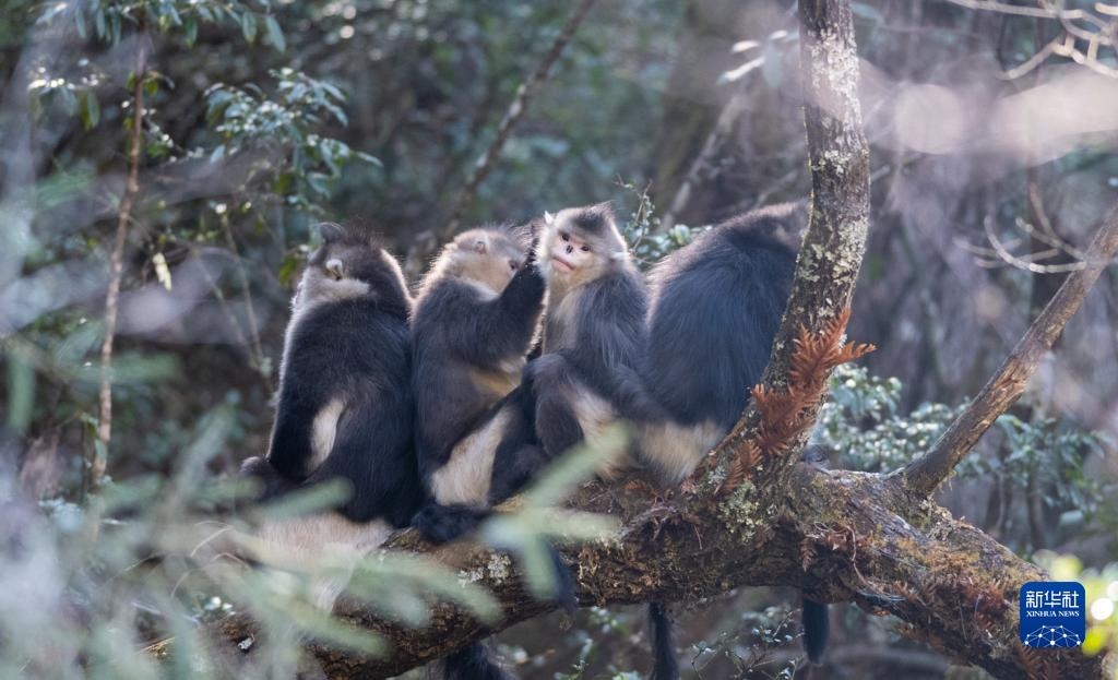 這是在云南白馬雪山國家級自然保護區(qū)內拍攝的滇金絲猴(3月13日攝)。新華社記者 王冠森 攝