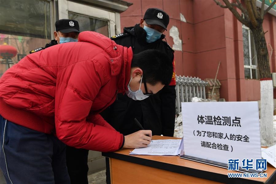 1月29日,內(nèi)蒙古自治區(qū)呼和浩特市賽罕區(qū)正泰家園小區(qū)的工作人員對(duì)進(jìn)入人員進(jìn)行登記。 -