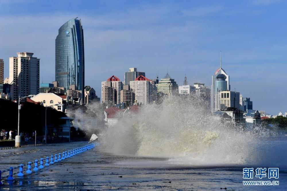 7月25日在山東省青島市澳門路海邊拍攝的巨浪。 受今年第6號臺風“煙花”影響,山東省青島市風力逐漸加大,沿海出現(xiàn)巨浪。新華社發(fā)(王海濱 攝) -
