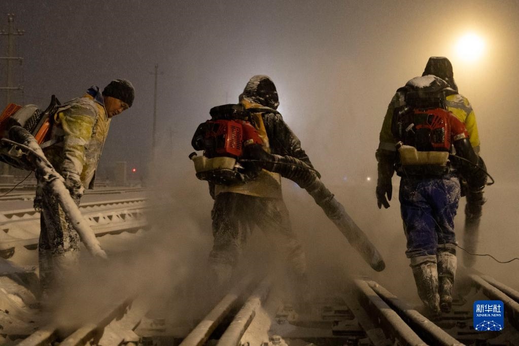 11月22日凌晨,在雞西站西場,工作人員進(jìn)行清雪作業(yè)。 -